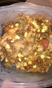 My wonderful hubby made a Gluten Free Mexican Casserole for dinner tonight. We are a “one-dish” meal kind of family. Throw a bunch of stuff in a dish, bake it for a while and eat. It will be interesting so see how that changes now that I’m Gluten Free.