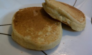 This only makes about 8 pancakes so you can easily double the recipe if you are feeding more people. I thought this batter was pretty tasty and fluffed up nicely! The toddler and hubby loved them!