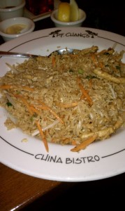 For my main course I ordered GF P.F. Chang’s Chicken Fried Rice. This was good but not as flavorful as I was hoping for. I added some GF soy sauce and that helped. Next time I plan to try the Singapore Street Noodles.