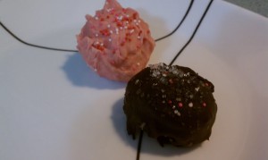 For dessert we made these tasty GF Cake Balls! I used semi-sweet chocolate and pink candy chips.