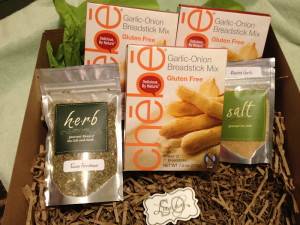 I had the opportunity to try the So You Like Breadsticks box. It came with 3 boxes of Chebe Garlic Onion Breadstick Mix, an Italian herb mix and a garlic salt packet from Salt Sisters. The gift box was beautifully wrapped and decorated, even down to the little details!
