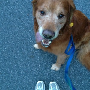I have always had a love hate relationship with running. It has always been a part of my life due to sports. But I haven’t always enjoyed running. I started running as an adult in March 2008. I have found that 5K races are a good distance for me. The training doesn’t take too long so I’m not gone from the family too much. I had to stop running during both pregnancies but was able to get back out there a few months after they were born. I have been running for a few months and even did a 2 mile race in July. Jack, our male Golden, is my running partner. He helps me train and keeps me company on night runs.