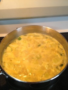 Then add veggies, water and seasoning mix from the box. Bring to a boil, then simmer for 20 minutes.