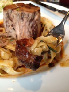 The mojito was very refreshing. The Fried Green Tomatoes topped with pimento cheese was one of our favorites! I honestly have never had kale before and we enjoyed the salad so much. The cheese on it was what made it for me. The soup was like eating a smooth baked potato with a hint of spice – so good! The pork shoulder over house made pasta was like heaven! It just melted in your mouth. The cheesecake was a wonderful ending to our meal. It was very smooth and the texture was great.