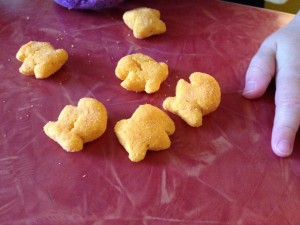 | Little B snacking on the GF Goldfish Puffs |