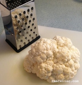 Use a cheese grater to grate the cauliflower. I found this to be messy but fun!