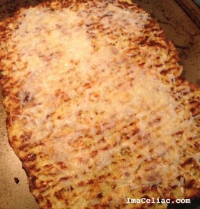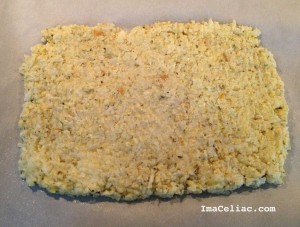 Pinterest and Gluten Free blogs have been filled with Cauliflower pizza crusts and cheese stick recipes lately. I decided this was the week to try them myself. I was hoping it would be a fun way to get the kiddos to eat more veggies. For my version I combined these two recipes and made a few changes. Two out of the three kids ate them so I call that a success! The grownups were also big fans of them.