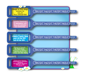 To go to the next level I ordered some custom wristbands from Kiddo Tags for her. These emergency alert wristbands come in a number of colors and are fully customizable. The ones I ordered have: