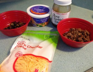 Here is the I’m a Celiac “Cook Your Cupboard” challenge. Make a meal with these 3 items: Gluten Free rice tortillas wraps, greek yogurt and zucchini!