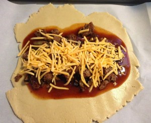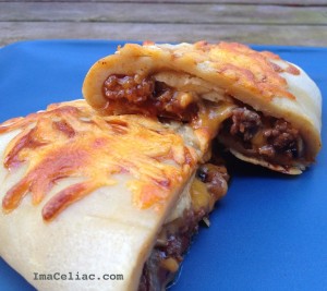 I had a tub of the new Pillsbury Gluten Free Pizza Dough and was planning on making some veggie calzones with it. However the ingredients I planned on using were used for other meals. So I took a hodge podge of items and made this kick tail, sauce running down your arm, dinner! Introducing Gluten Free BBQ Sausage Stromboli!