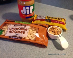 With the Chow Mein noodles I was ready to create the perfect salty and sweet treat! These do contain nuts and peanut butter so you may need to adjust accordingly. Here is how you make Gluten Free Chocolate Haystacks.