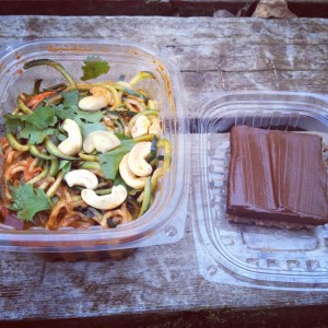 For dinner I enjoyed the food from Triangle Raw Foods. The Pad Tai was made with zucchini noodles. It had a great texture and flavor but was a touch spicy for me. The chocolate square had a nut base topped with an avocado chocolate spread. I could have gone swimming in the avocado chocolate goodness!