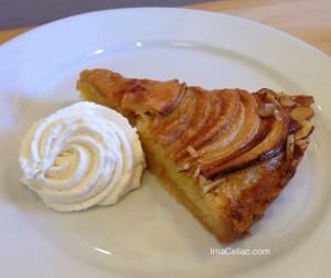Today I tried the Apple Almond Tart. It was reminiscent of sitting in France at a cafe. The taste, texture and flavor were just like the European desserts I remember. The tart was sweet but not too sweet. The swirl of whip cream was a perfect compliment to the tart.