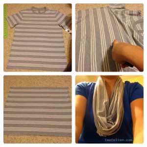 All my good crafty ideas come from Pinterest! This is a simple guide for how to turn a regular t-shirt into an infinity scarf without sewing!