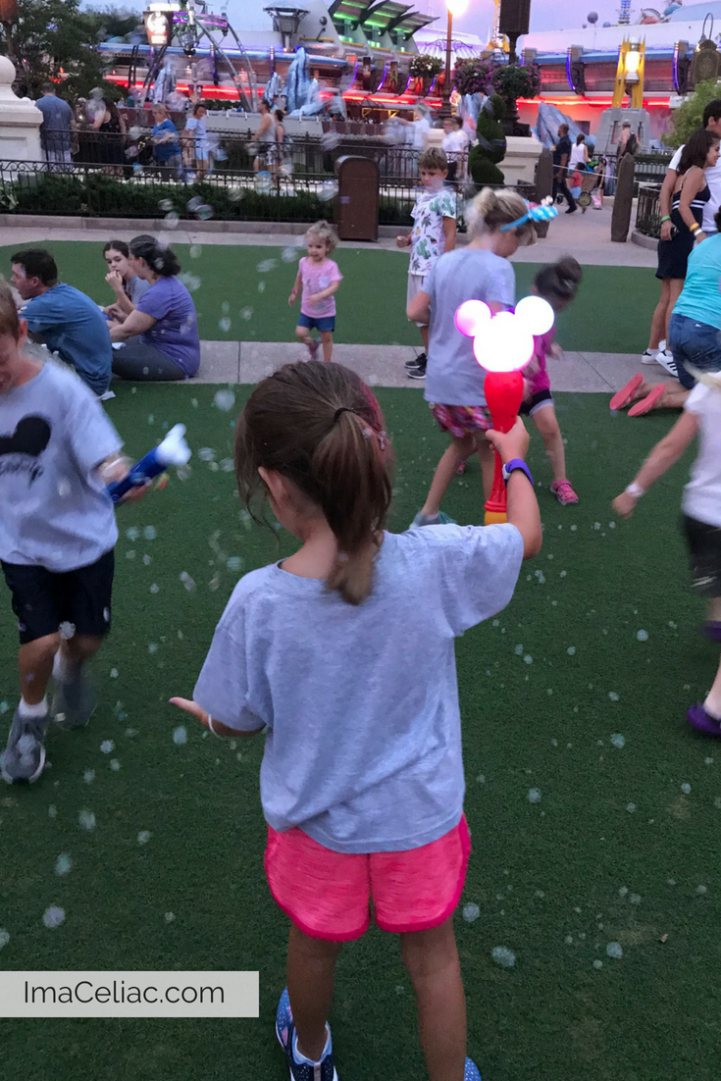 The Dessert Party costs extra and it isn’t cheap. To make a reservation you have to call Disney dining. I would suggest you book this as far ahead as you can because the event sells out fast. This isn’t something you can decide to do tonight and call today to get a reservation. I booked ours 65 days in advance. The cost varies but you are looking at around $45-$75 per person. Yes, I know that is a lot after paying $100 plus just to be in the park but I wanted our kids to enjoy the show. When I made the reservation I notified the Cast Member that I was Gluten Free and would need a safe option. He said they would make a note and that I would be taken care of.
